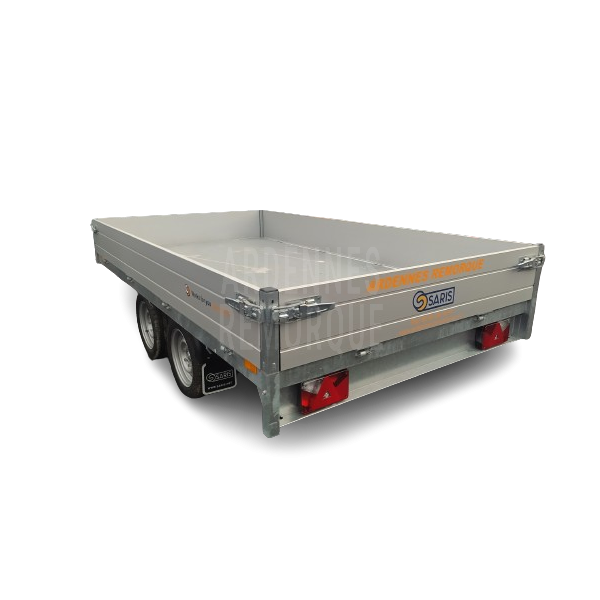 Remorque benne Saris, reconnue pour sa qualité exceptionnelle et sa fiabilité. Équipée d’une pompe électrique, avec tous les éléments d’origine Saris (pompe, carter, télécommande) pour une performance optimale.
