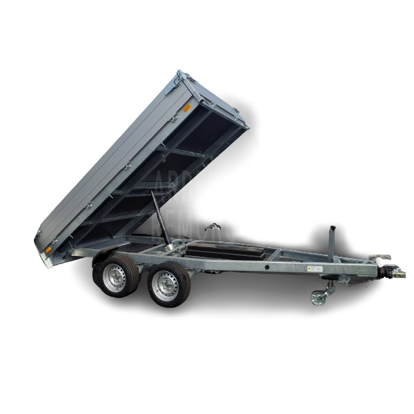 Remorque benne Saris avec rangement de rampe (rampes en option), reconnue pour sa qualité exceptionnelle et sa fiabilité. Équipée d’une pompe électrique, avec tous les éléments d’origine Saris (pompe, carter, télécommande) pour une performance optimale.