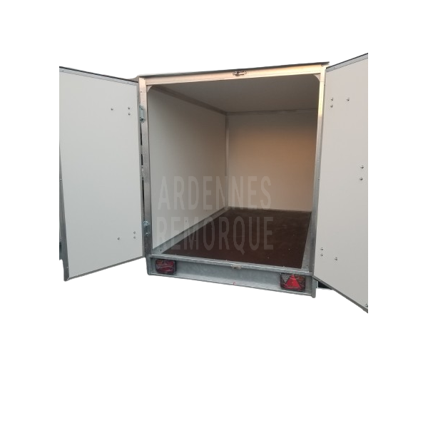 Fourgons VDM Trailers disponibles en simple ou double essieu, conçus pour une qualité incomparable et une grande durabilité. Équipés de double portes arrière pour un chargement facile, avec PTAC 750 kg (+99€ TTC) selon vos besoins.